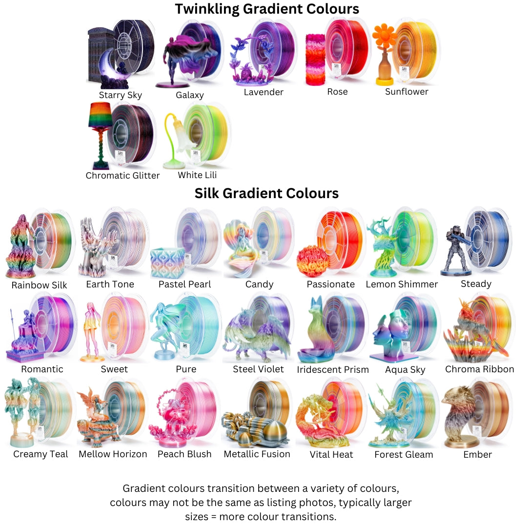 (Please note that gradient colour order varies and smaller sizes may have less colour transitions on gradient colours)