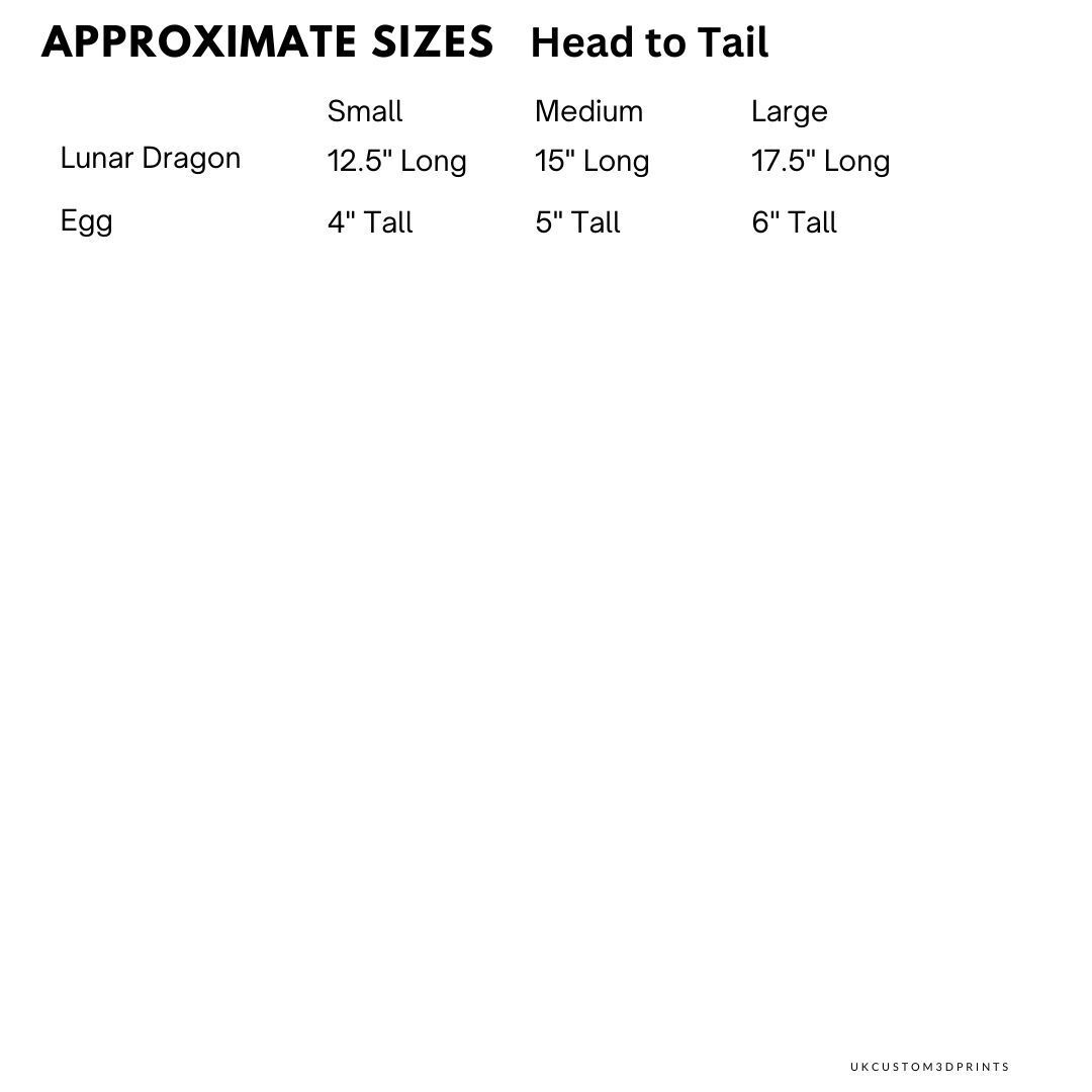 3D Printed Lunar Dragon and optional Egg a must-have for any collector of mythical creatures. The intricate design features a Dragon and an egg, both of which are expertly crafted with precision. The set is perfect for display and makes a great addition to any collection. The set is a great gift for anyone who loves mythical creatures and is sure to impress.