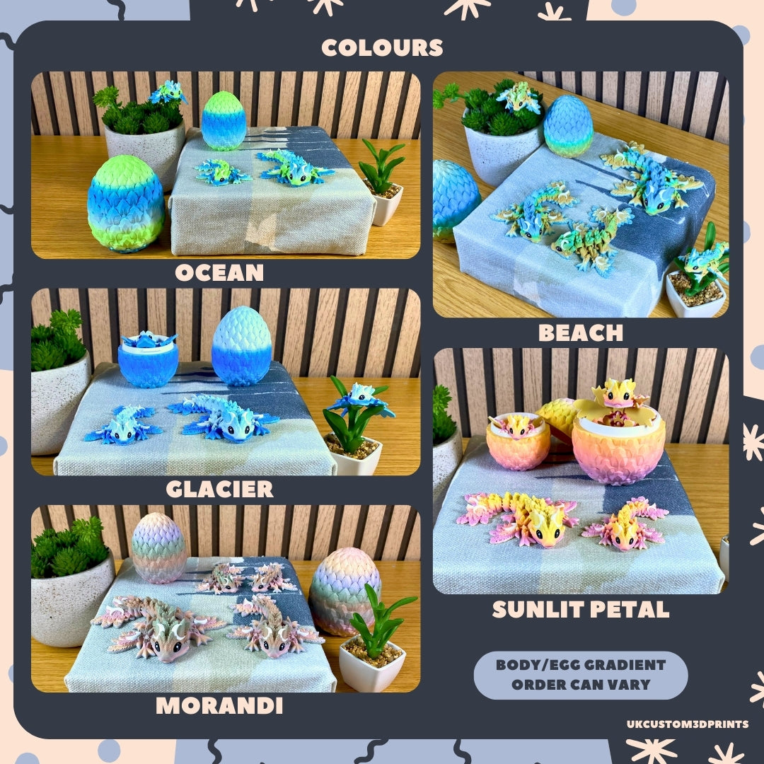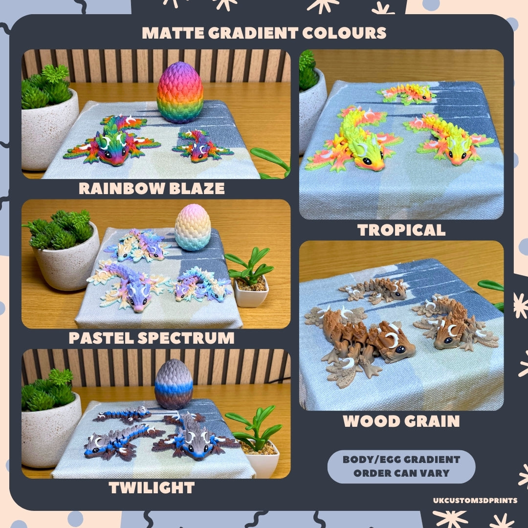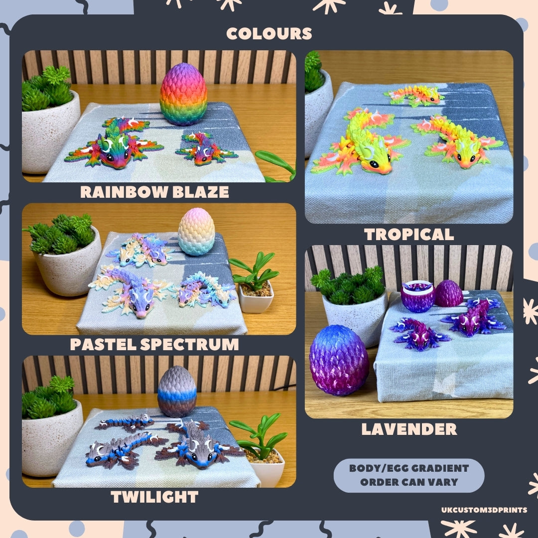 3D Printed Tiny Lunar Dragon and Egg - Articulated - Fidget Gift