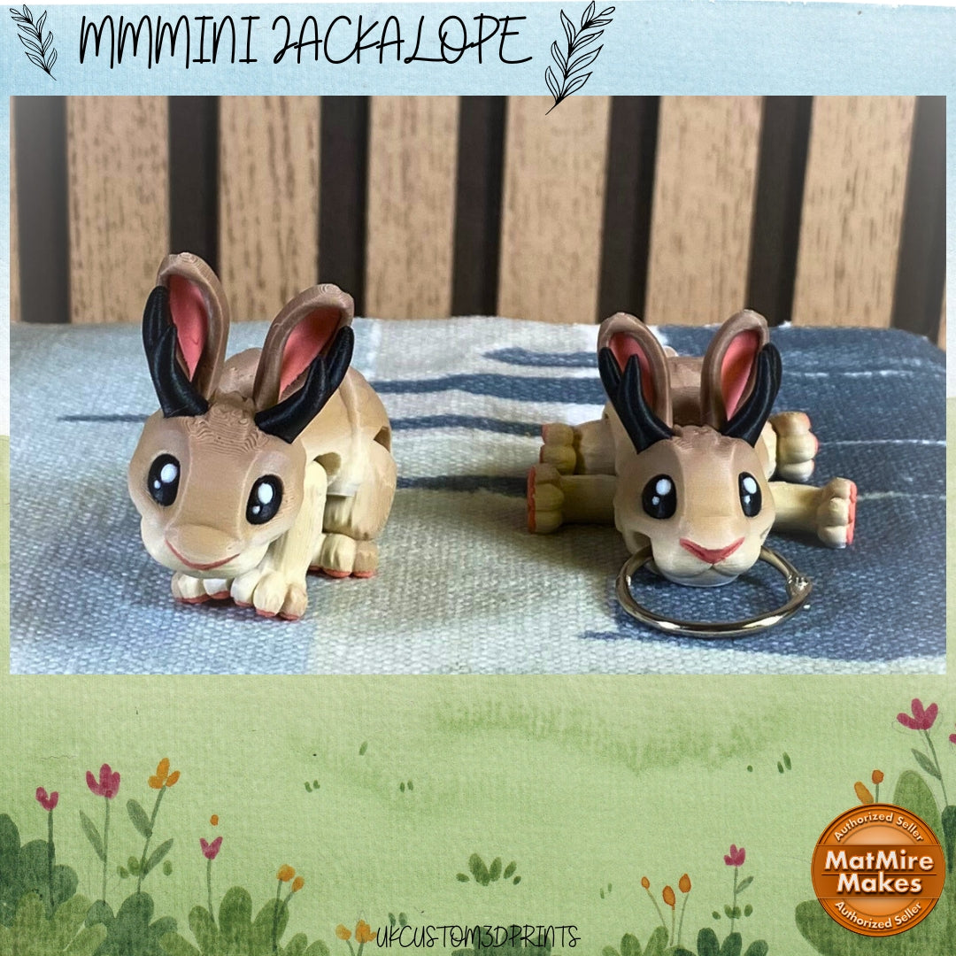 3D Printed Articulated Mini Jackalope - available with or without keychain